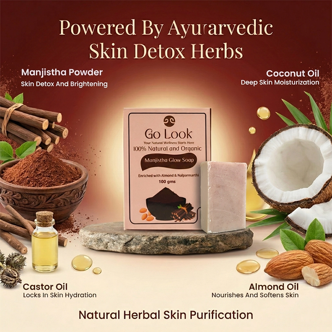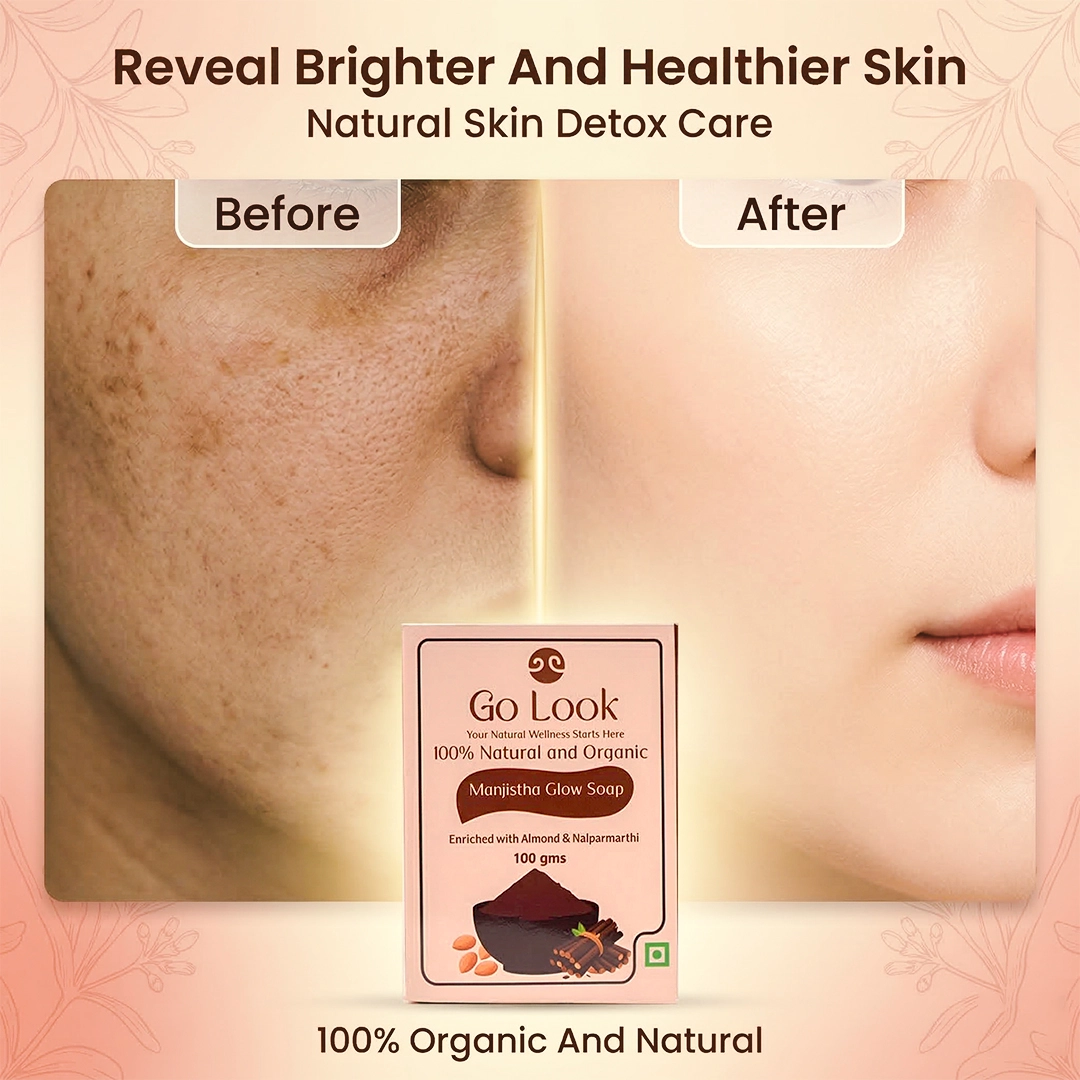 A 100% organic and handcrafted soap enriched with pure manjishta and nourishing herbal oils to gently detoxify and revitalize the skin. This natural formula helps brighten skin tone, reduce tan, scars, and dark spots while improving overall texture. Suitable for all skin types, it leaves your skin refreshed, clear, and naturally radiant with every wash.